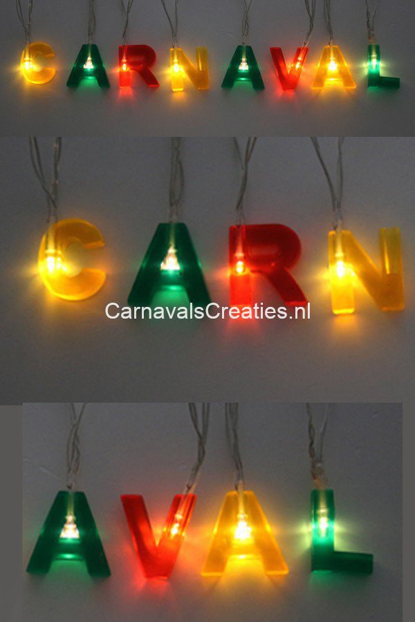 Letterslinger met licht rood/geel/groen Carnaval